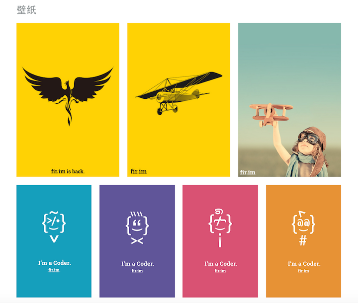 fir.im 的设计图,想要高清的壁纸。我们整理了七版壁纸主题包,有「凤凰涅槃」、「复古飞机」、「飞机与小孩」、「 I'm a Coder 」系列,喜欢的朋友,可以去[这里](